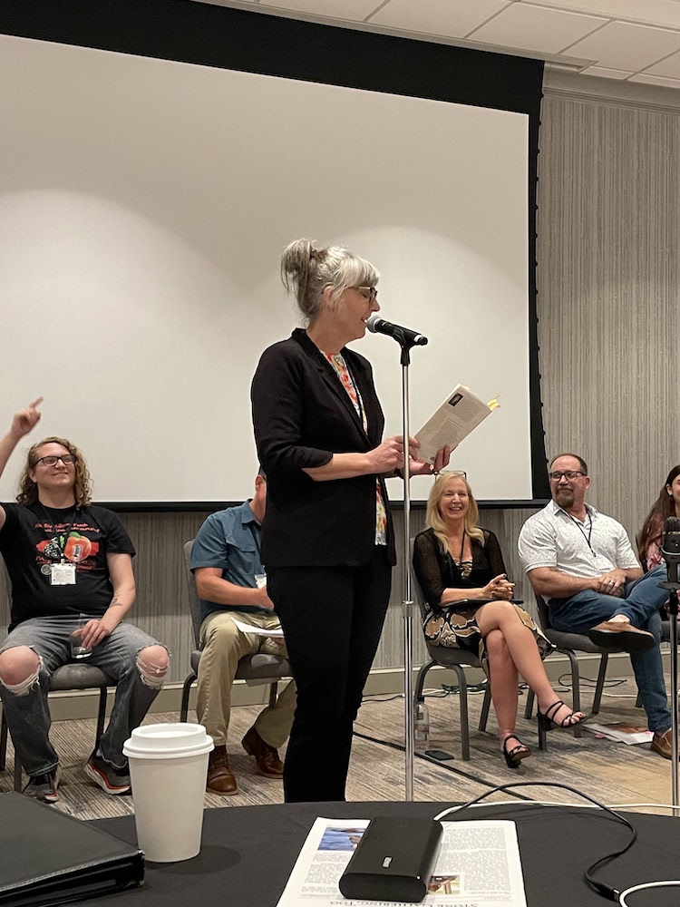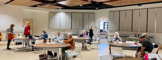 The IPA Fall 2023 hybrid poetry workshop was held at the Grand View University Speed Lyceum in Des Moines with 22 members attending in person and 13 online. Our critics for the day were Rustin Larson and Shannon Vesely.