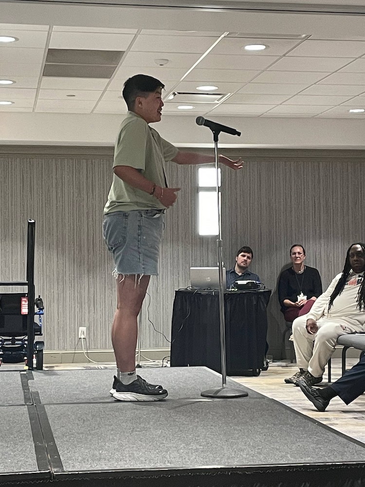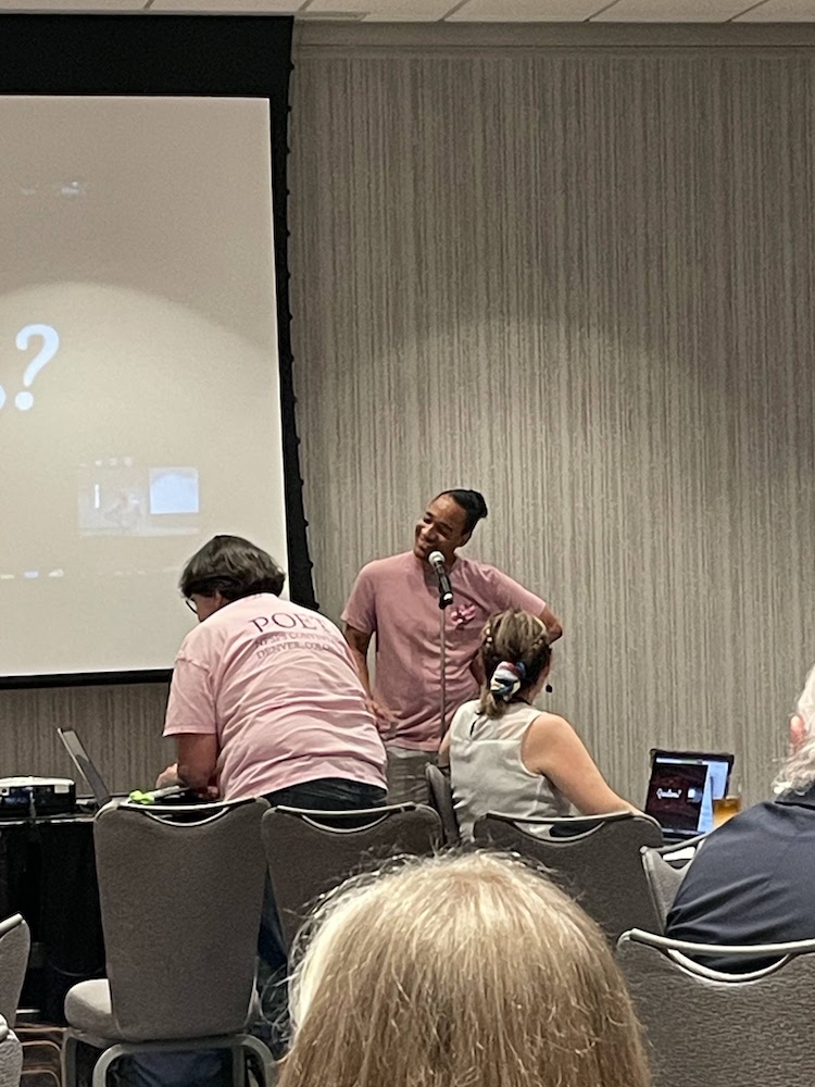 The IPA Spring 2024 hybrid poetry workshop was held at the Grand View University Speed Lyceum in Des Moines with 23 members attending in person and 14 online. Our critics for the day were Joy Lyle and Geneva Toland.