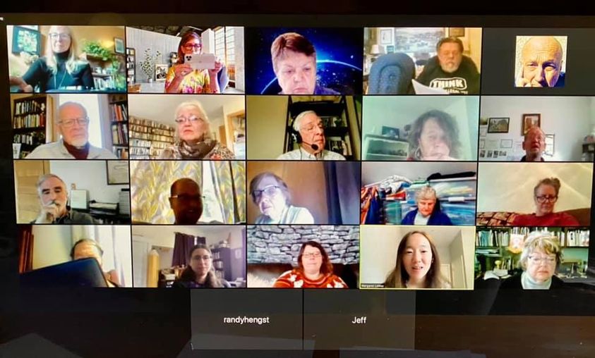After an abundance of virtual gatherings throughout the covid pandemic, the Iowa Poetry Association adopted a hybrid approach for our Fall 2022 poetry workshop on Saturday, October 29, at the Grand View University Speed Lyceum in Des Moines. The facility there allowed us to offer participants the option of attending the workshop either in person or via Zoom. We had a healthy turnout with nineteen in-person attendees and twenty members who chose to participate virtually. Our readers for the day were Jerrold Narland and Samantha Wilson.